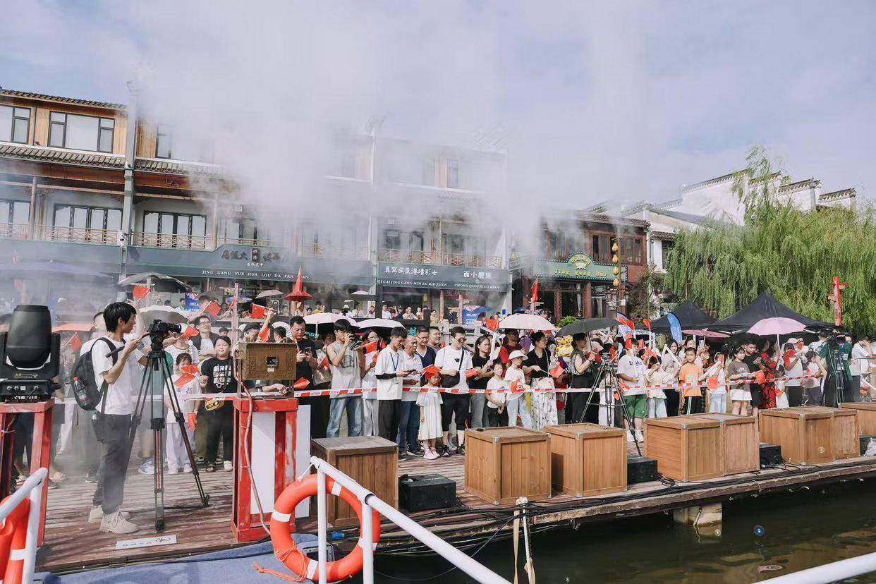 10月1日,“2025靖港古镇大学生水上音乐周”在楚河码头启幕。全国大学生“特种兵”与乐队迷齐聚水上舞台,伴随《我的祖国》激昂旋律,芦江之上巨型国旗缓缓展开,现场观众挥舞国旗齐声合唱,用最热烈的方式为祖国庆生,拉开这场青春盛宴的序幕 。